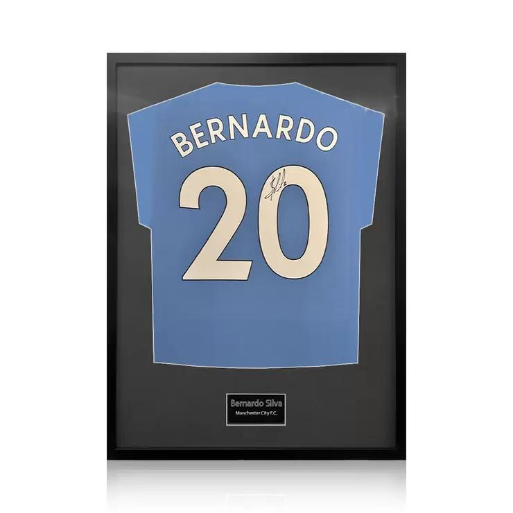 Bernardo Silva signed framed Manchester City football shirt, with black or white mount. This is an official Manchester City football shirt, which was personally signed by Bernardo Silva, at a private signing session with The Fan Cave Memorabilia.
