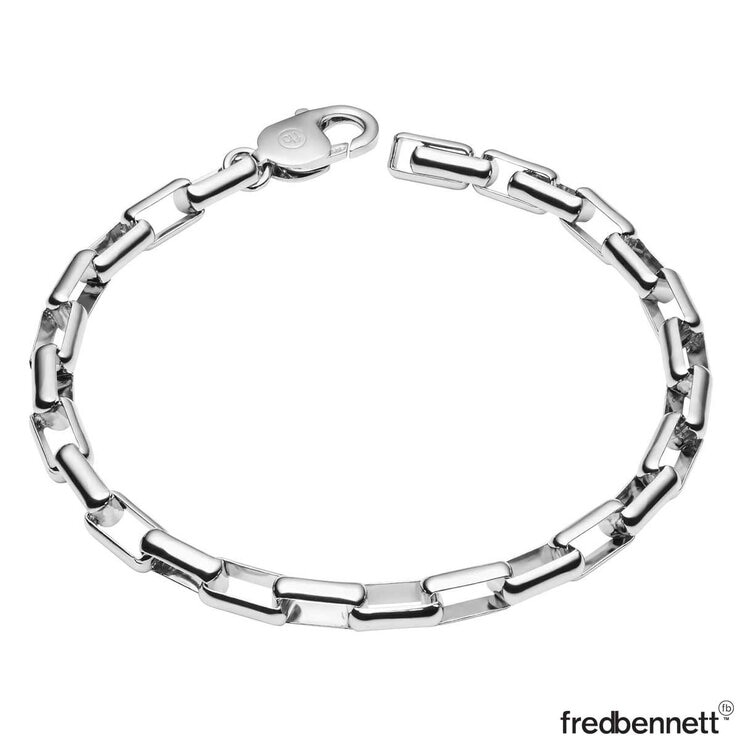 This classic bracelet is crafted from sterling silver with platinum plating for longevity. Since 2004, Fred Bennett has specialised in modern pieces with masculine style in mind. All Fred Bennett jewellery is certified safe for skin by AnchorCert Protect and protected against all known skin allergies.