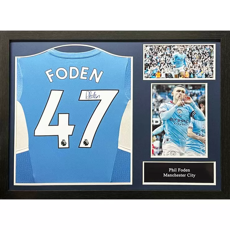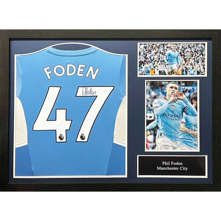 Phil Foden Signed Framed Manchester City Shirt