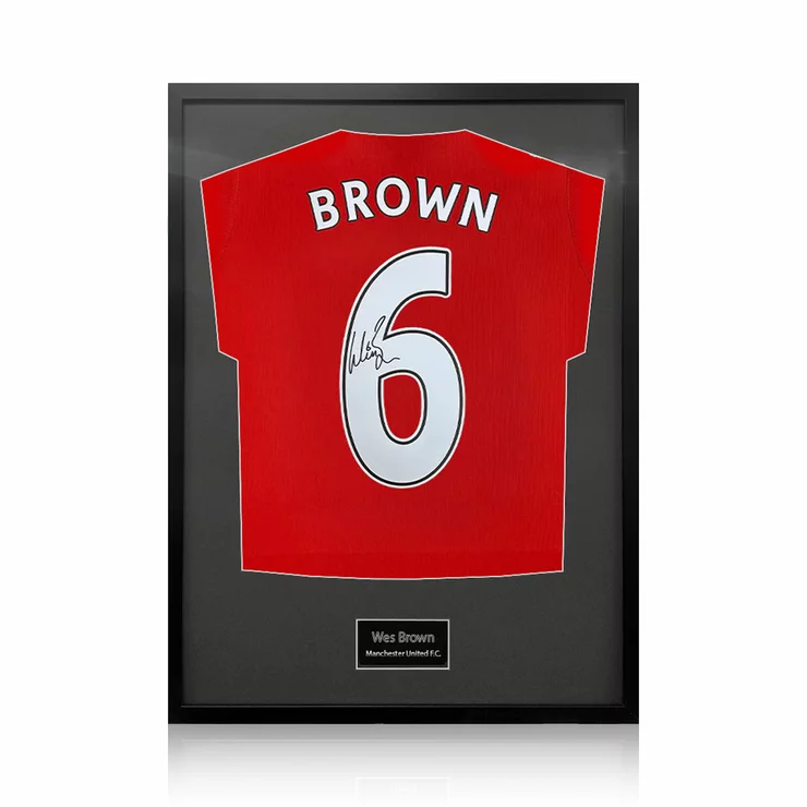Wes Brown signed framed Manchester United football shirt, with black or white mount. This is an official Manchester United shirt, which was personally signed by Wes Brown, at a private signing session with The Fan Cave Memorabilia.