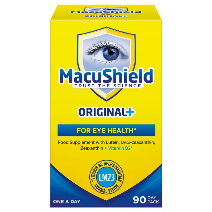 MacuShield Original+ is a lutein (10 mg), zeaxanthin (2 mg), meso-zeaxanthin (10 mg) and vitamin B2 (riboflavin) (0.3mg) once-a-day food supplement. Scientific research shows that lutein, zeaxanthin and meso-zexanthin are found at the back of the eye, at the macula, where they form the macular pigment (yellow colour). Meso-zeaxanthin is particularly concentrated at the centre of this pigment. Lutein and zeaxanthin can be found in fruits and dark green leafy vegetables and meso-zeaxanthin is present in some species of fish and seafood. The macular pigments in MacuShield are obtained from marigolds (Tagetus Erecta), specifically grown for this purpose.