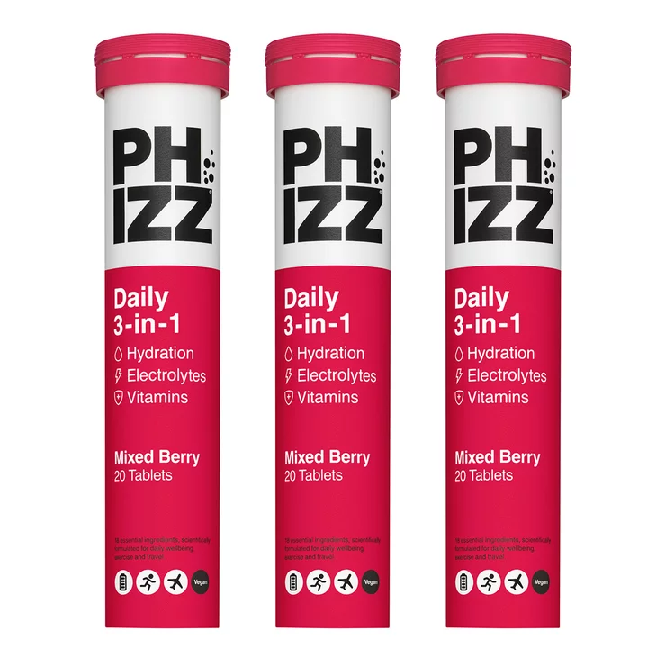 Hydrate better with Phizz’s science-led formula that hydrates 3x faster than water alone, provides 7 key electrolytes plus the comprehensive multivitamins your body needs to stay on top form. Water is good. Phizz makes it better.