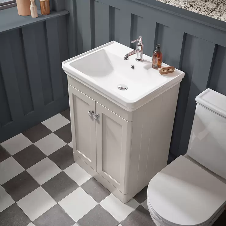 The Ashby 600 floor mounted unit is a perfect mixc of classic sophistication and modern practicality. With double doors, the unit features traditional shaker style doors, combined with soft, curved corners for a modern edge. Features also include a deep ceramic 1 tap hole basin with generous wash space and intergrated overflow.