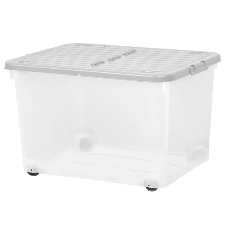 Wham 44 Litre Clear/Cool Grey Box with Wheels & Folding Lid - 5 Pack