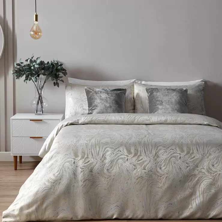 Paoletti Marble Oyster Duvet Cover Set, Super King