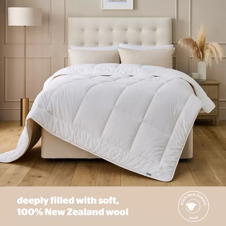 Wrap yourself in this naturally luxurious 100% New Zealand Wool duvet, for a blissful night of cocooning comfort. Beautifully crafted with naturally breathable, hypoallergenic and temperature regulating wool, so you can wake up feeling refreshed.