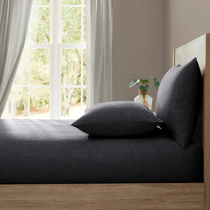 Lazy Linen 100% Washed Charcoal Linen Fitted Sheet in 3 Sizes