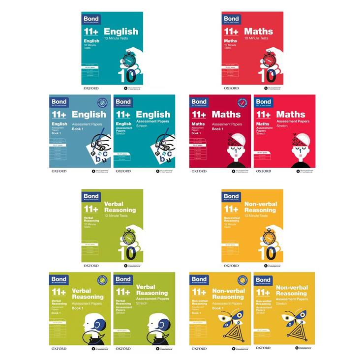 Bond 11+ Assessment Papers provides essential bite-size practice to cover each 11+ question type your child will experience in their actual exam. 10 minute tests provide essential bite-size practice setting strong foundations for success in common entrance or 11+ exams. Assessment papers book 1 are topic-based practice questions for the 11+ exam, which have been written to cover the core 11+ question types your child will experience in their actual exam. Stretch assessment papers are designed to challenge the most able children covering all the core 11+ question types your child will experience in their actual exam