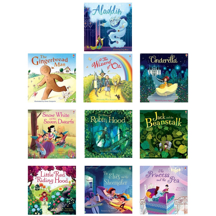 Includes: Aladdin, The Gingerbread Man, The Wizard of Oz, Cinderella, Snow White and the Seven Dwarfs, The Story of Robin Hood, Jack and the Beanstalk, Little Red Riding Hood, The Elves and the Shoemaker, The Princess and the Pea