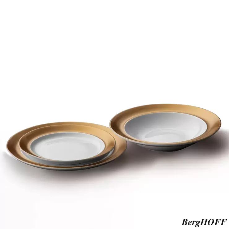 The BergHOFF GEM 12 Piece Set is a versatile dinnerware set made from high-quality porcelain with an elegant, glossy finish that is dishwasher safe. This white tableware set with gold accents effortlessly creates a sense of luxury that fine dining calls for. Whether it's your turn to host a party or you've invited your friends and family to celebrate a special occasion then it's time to bring out the bling! With the classy GEM tableware you'll instantly add that touch of glamour for an impressive table setting. So whether you use the unique dinnerware to dress up your own dinner table or want to offer them as a gift, they're sure to steal the show!