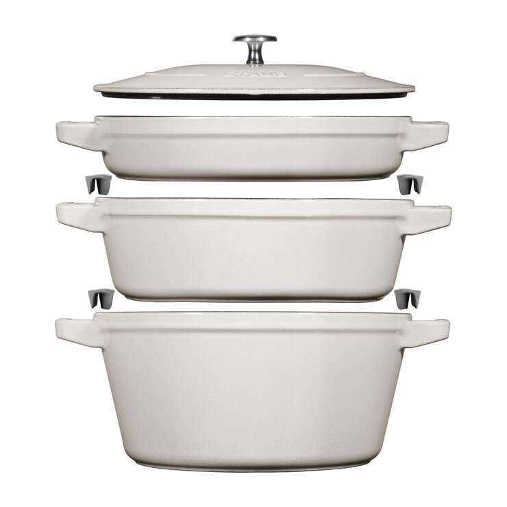 STAUB Stackable 3 Piece Pot Set in White Truffle