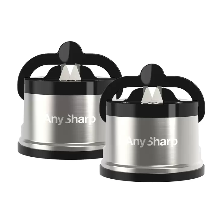 Anysharp Pro Metal Knife Sharpener with Suction, 2 Pack in Silver