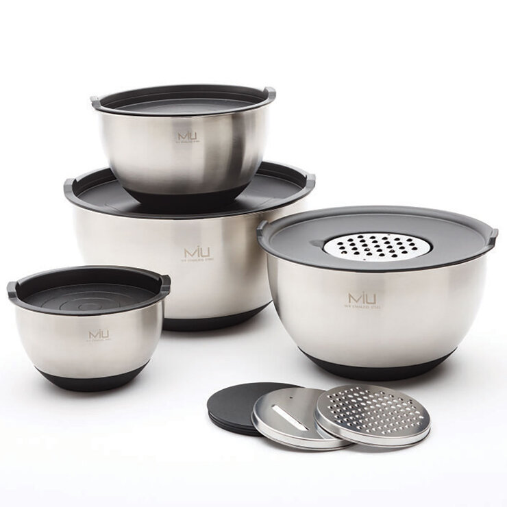 MIU Stainless Steel Mixing Bowl 8 Piece Set with 3 Grater Attachments