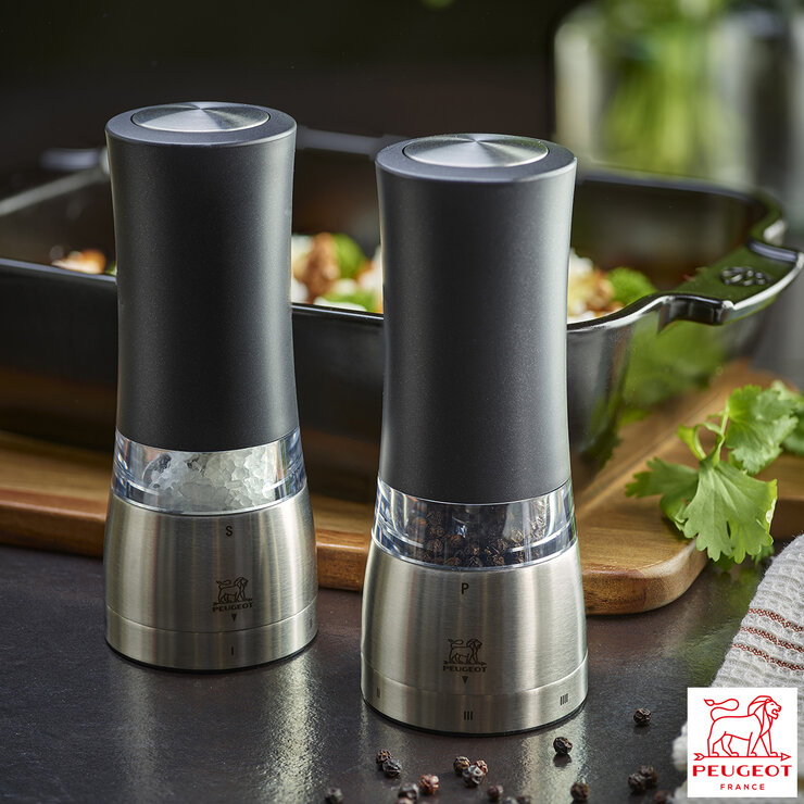 The Daman electric mill by Peugeot operates at the touch of a button. Efficient and silent, just pressing the button once is all it takes to produce the perfect amount of salt or pepper. In addition, there is special lighting to help you to keep a close eye on the amount of spice being ground. The Daman electric salt and pepper mills are practical, as they can be operated with one hand while you’re using the other to cook with. A Peugeot signature, the patented u’Select grind control system at the base of the mills gives a taste result that is beyond perfection. Elegance and practicality are the keywords of this set of Peugeot mills. Why not add it to your wishlist or perhaps it would make a great gift for someone who loves cooking
