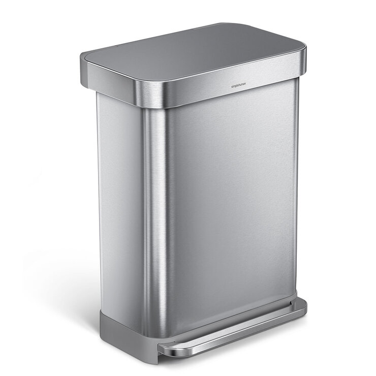 simplehuman Rectangular Step Can Bin 55L in Brushed Stainless Steel with Grey Plastic Lid