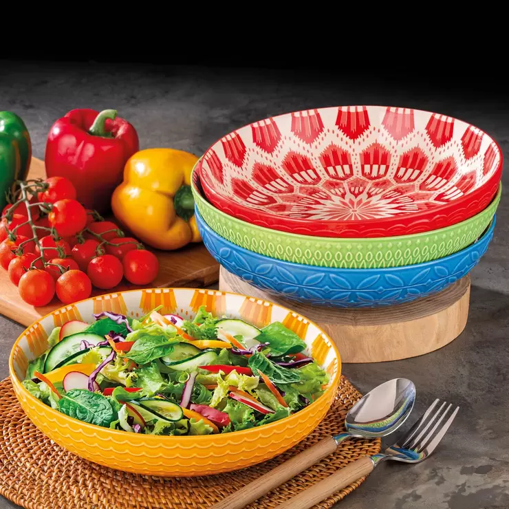The Signataure Stoneware 4 Piece Serving Bowl Set are versatile bowls that are great for pasta, salads and multi course meals. Decorative yet functional, these mix and match bowls can easily go from the kitchen to your dining table, perfect for serving, entertaining and everyday family use.