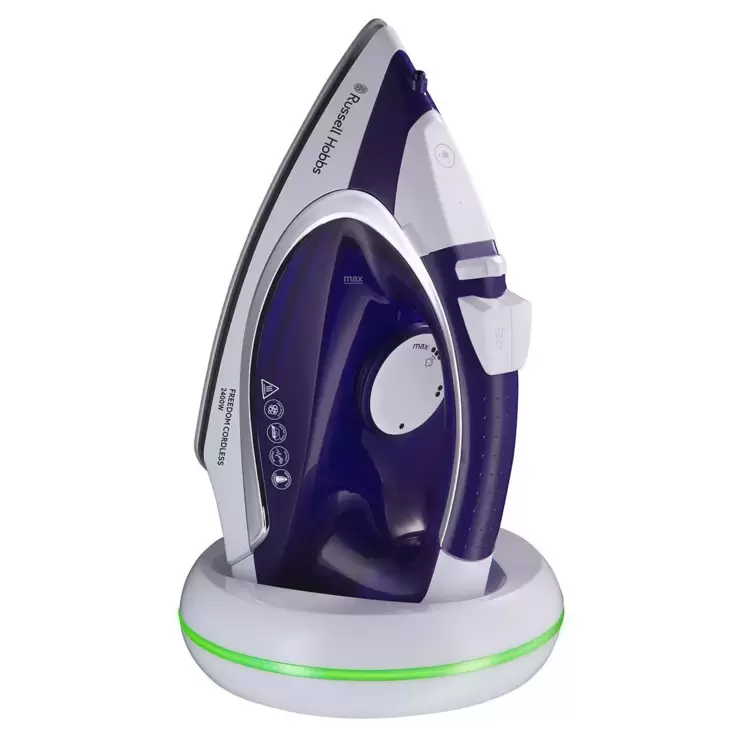 Cut the ties of conventional ironing with the Russell Hobbs Freedom Cordless Iron. This innovative iron means you can iron wherever you feel most comfortable, sitting on a smart light ring which indicates when ready to use.