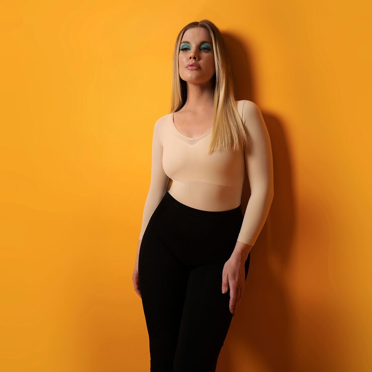 This soft, lightweight, seamless support t-shirt moulds to your upper body and arms while providing smoothing support that minimises bumps and bulges. The gentle underarm and back compression helps to reduce swelling. Designed for optimum stretch and freedom of movement with a low neckline, ideal for wearing under clothes. The special moisture control fabric helps your skin stay fresh and dry.
