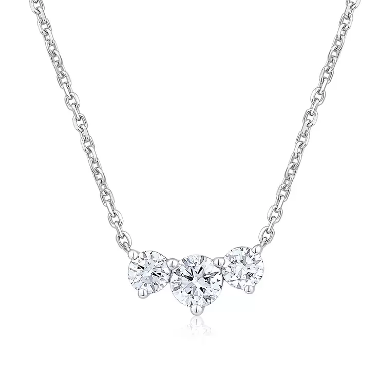 1.00ctw Round Brilliant Cut Diamond 3-Stone Necklace, 18ct White Gold