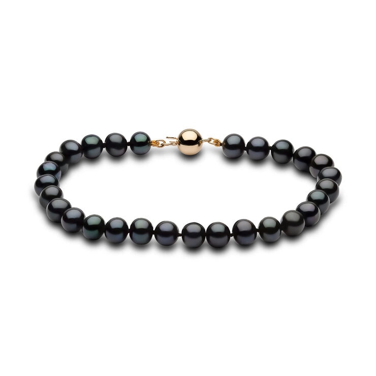 6-6.5mm Cultured Freshwater Black Pearl Bracelet, 18ct Yellow Gold