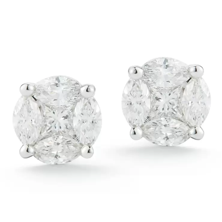 0.50ctw Marquise and Princess Cut Diamond Multi Stone Earrings, 14ct White Gold