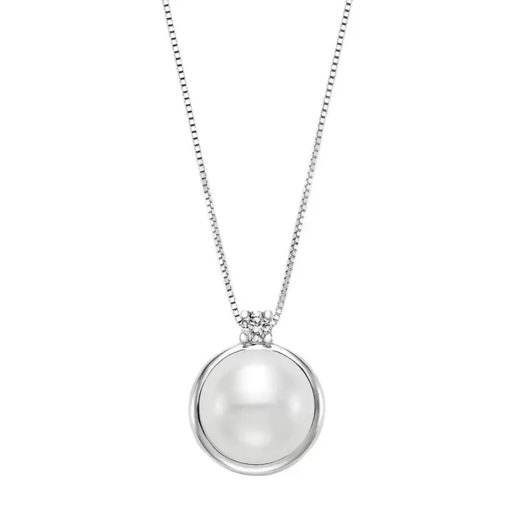 9-10mm Cultured Freshwater White Pearl & 0.06ctw Diamond Pendant, 14ct White Gold