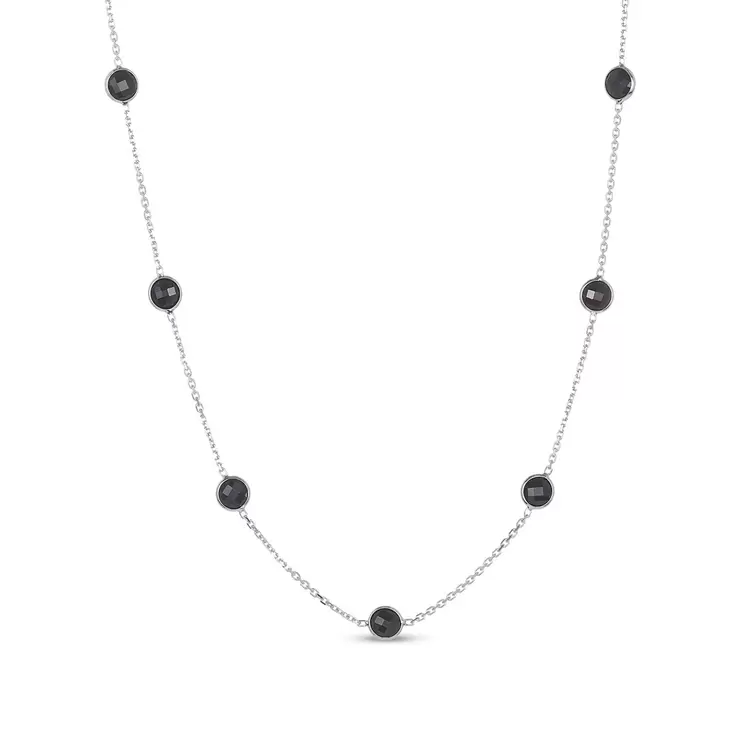 Round Cut Black Onyx Necklace, 14ct White Gold