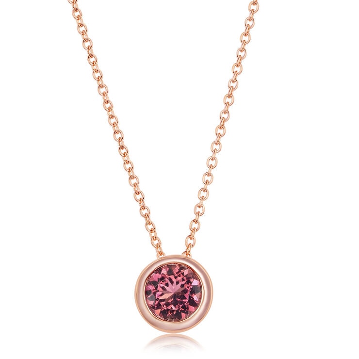 Round Cut Pink Tourmaline Pendant, 14ct Rose Gold
