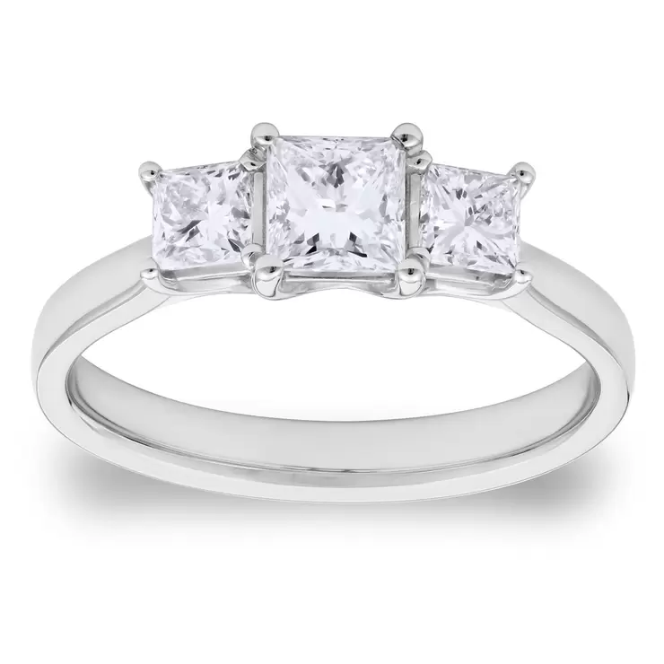 1.00ctw Princess Cut Diamond 3 Stone Ring, 18ct White Gold - Size N