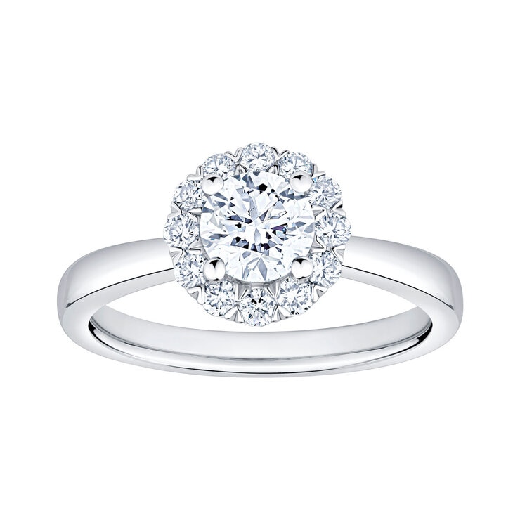 1.00ctw Round Brilliant Cut Diamond Halo Ring, Platinum