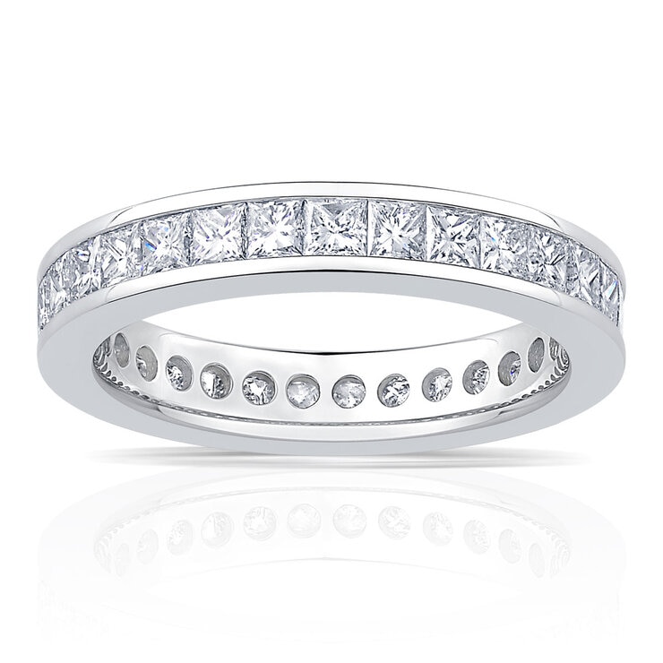 2.00ctw Princess Cut Channel Set Diamond Eternity Ring, Platinum in 6 Sizes