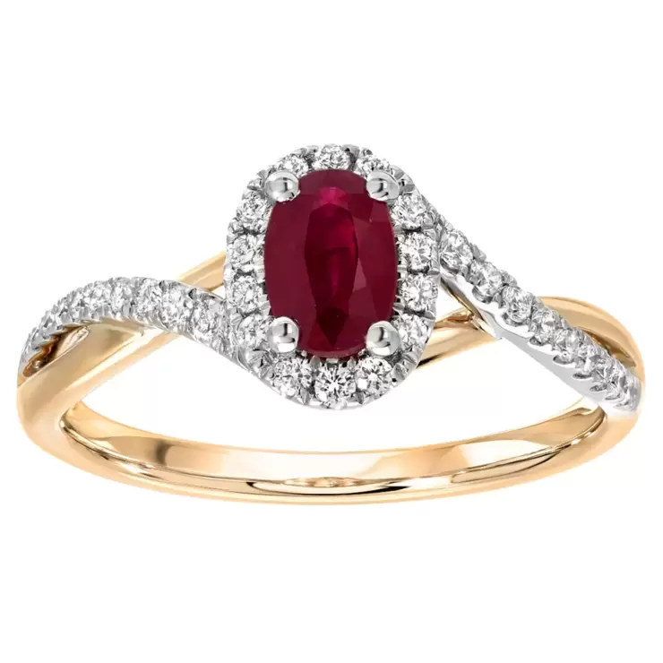 Oval Cut Ruby and 0.20ctw Diamond Ring, 14ct White and Yellow Gold