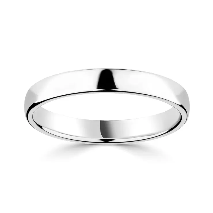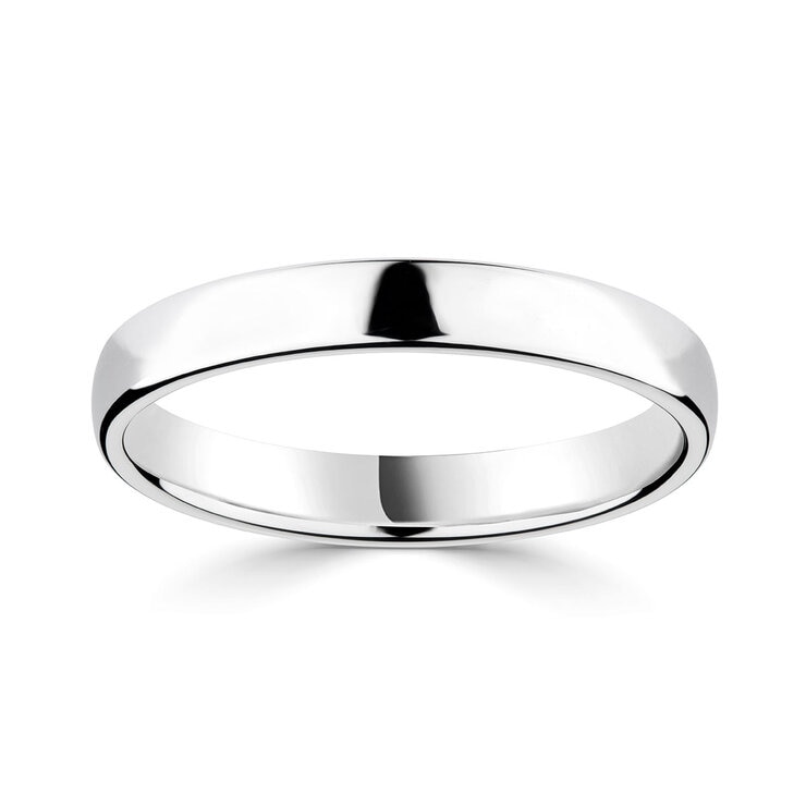 3.0mm Classic Court Wedding Ring, 18ct White Gold