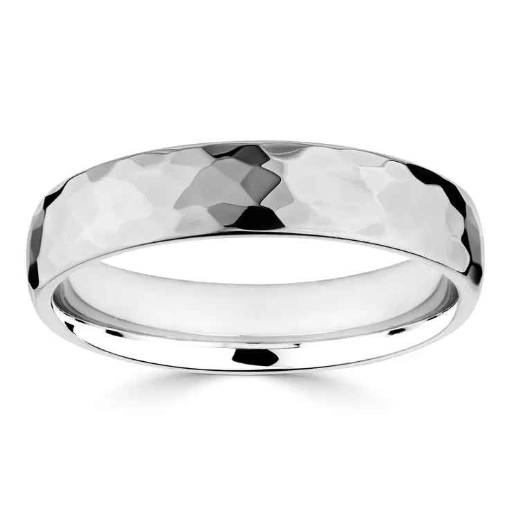5.0mm Luxury Court Wedding Ring, Hammered Platinum