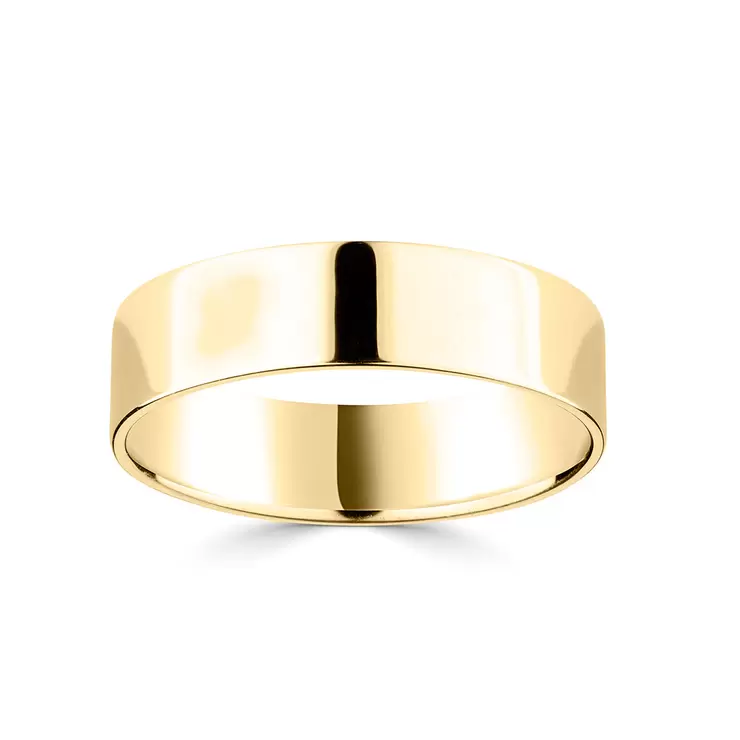 6.0mm Classic Flat Court Wedding Ring, 18ct Yellow Gold