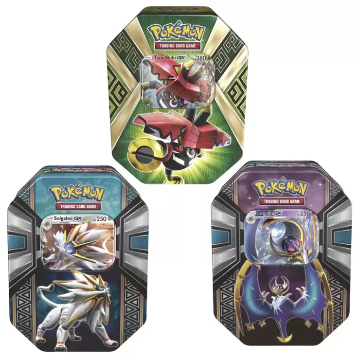 Choose from 3 different assortments: Lunala GX, Solgaleo GX or Tapu Bulu GX, Tapu Koko GX, Marshadow GX or Ho-Oh GX, Dusk Mane Necrozma GX, Dawn Wings Necrozma GX or Necrozma GX.
