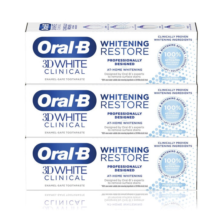 Oral-B 3D White Clinical Whitening Restore Toothpaste, 3 x 70mlOral-B 3D White Clinical Whitening Restore Toothpaste, 3 x 70ml