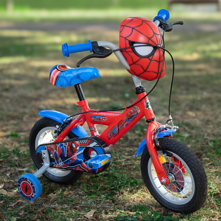 Your little hero can enjoy their next outdoor adventure with this Marvel Spider-Man 12" Kid's Bike by Huffy. This bike has a fun superhero design with cool features. Right upfront is a Spider-Man handlebar mask to store your child's favourite toys - it even features lights and sounds! The durable steel frame and fully enclosed chainguard are fully decorated with Marvel Spider-Man graphics. The single-speed bike comes with front and rear hand brakes and removeable stabilisers for when your kiddo is ready to take it on two wheels, while the front and rear fenders keep them clean and dry. This model is recommended for ages 3 to 5 years.
