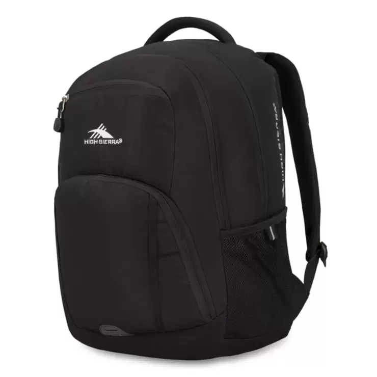 Perfect for business or recreational use, this High Sierra RipRap Everyday Backpack has a padded bottom panel for added protection, internal mesh zippered pocket for storing laptop wires or small accessories and premium padded air mesh grab handle.