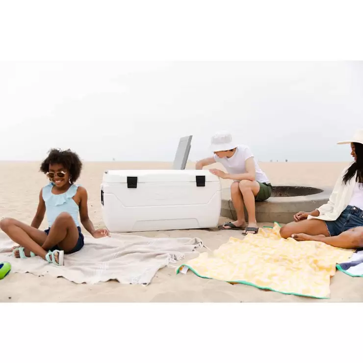 The Igloo MaxCold 165 Quart Cooler is the perfect companion for either a day at the beach or on the sideline at a picnic. This innovative cooler boasts ice retention for up to 7 days with high performance insulation throughout the body and lid of this cooler. The engineer-grade hinges are designed with a "stay-open" detent to help keep the lid from accidently closing while reaching into the cooler. The quick access hatch makes this cooler extremely accessible and makes it easy to grab a cold one or access your favorite snack quickly.