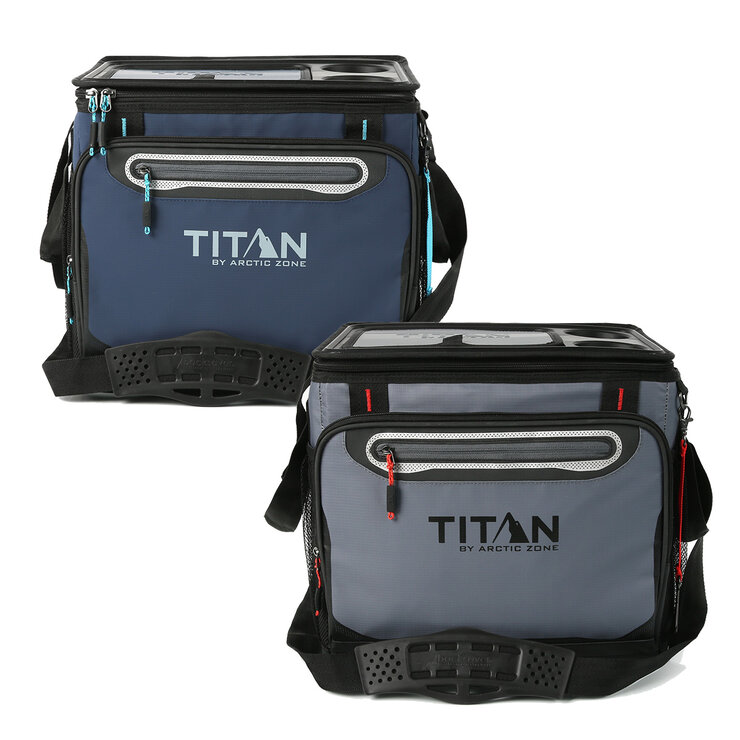 The Titan by Arctic Zone 40 Can Collapsible Cooler has loads of room and keeps ice up to 2 days! The cooler features a TableTop™ with easy access lid, 2 drink holders and a detachable bottle opener.