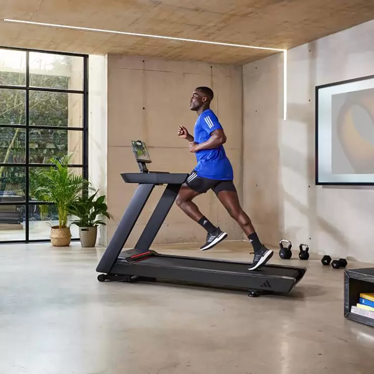 Combining adidas Console+ with the T-23 opens a gateway to the global running community. Enabling Zwift compatibility, experience an immersive and interactive online network as you conquer virtual terrains. Console+ also syncs with Kinomap, allowing you to unleash your inner explorer by running real-world routes, taking on challenges, and competing with friends. Alongside offering a wide range of pre-set workouts, Console+ provides detailed training reports, syncs with selected health-tracking platforms, and logs each workout for valuable performance insights. You can even celebrate fitness milestones by sharing your achievements directly on social media. With a spacious running area of 150 x 52 cm that features an orthopaedic belt and NRG cushioning technology, the T-23 provides maximum impact absorption to minimise the strain placed on sensitive joints. The Treadmill’s fixed running deck delivers a much stronger and more stable running platform to withstand consistent usage, a build quality that results in a max. user weight of 150 kg.