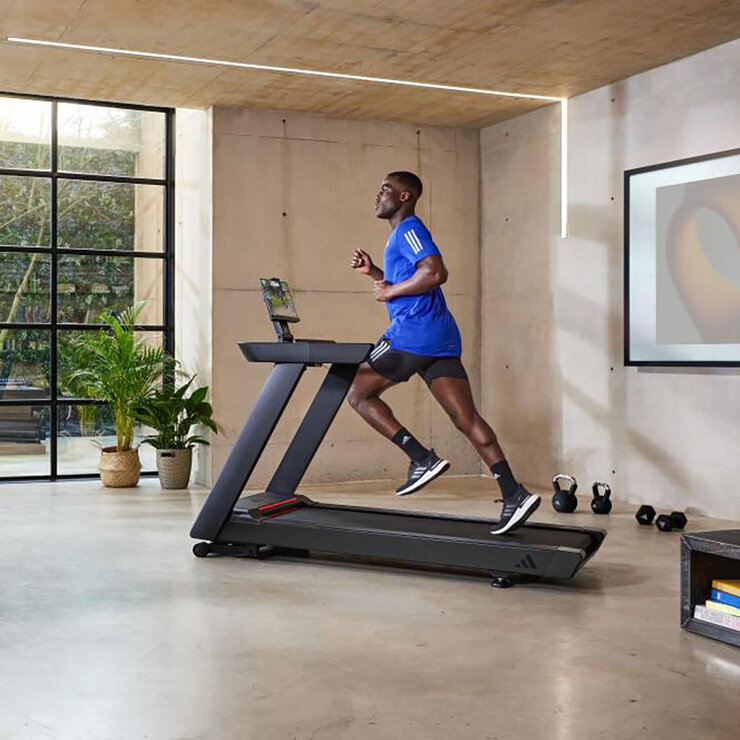 Designed to elevate home cardio workouts, the adidas T-23 features the latest treadmill technology alongside the dependability you would expect from a commercial gym machine. Fitted with a powerful 4.5 HP brushless motor at the heart of the Treadmill’s sleek and minimal frame, the T-23 delivers quieter and more energy-efficient performance that rivals any high-end motor. Hitting a top speed of 20 kph (12.4 mph) across 15 levels of power incline, the T-23 allows you to challenge both your cardio and muscular endurance no matter your training style. Offering 24 pre-programmed workouts along with 3 custom and 3 target settings, the powerful onboard console creates workouts that will challenge any level of fitness or ability.