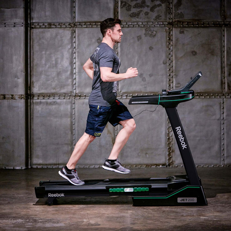 Crank up the intensity and take your runs to the next level with the Reebok Jet 200 Series Bluetooth Folding Treadmill – built for those who want big performance, smooth runs, and interactive training at home. Powered by a 2.25 HP motor, the Jet 200 delivers quiet, smooth operation, even at a top speed of 18kph (11mph). With 15 levels of powered incline, you’ve got a whole range of intensity options to challenge yourself — whether you're sprinting or tackling those calorie-torching hills. A spacious 46cm x 140cm (18” x 55”) running deck offers plenty of room for a full stride, while Air Motion cushioning ensures every step is soft on your joints, letting you go longer, faster, and more comfortably.