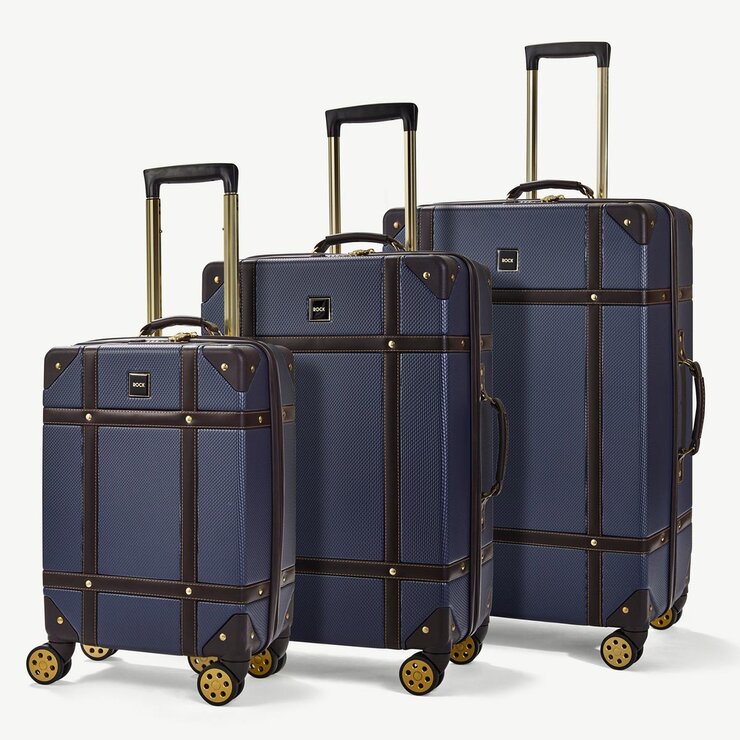 Rock Vintage 3 Piece Hardside Luggage Set in Navy