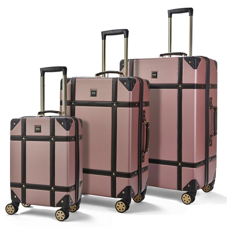 Rock Vintage 3 Piece Hardside Luggage Set in Pink