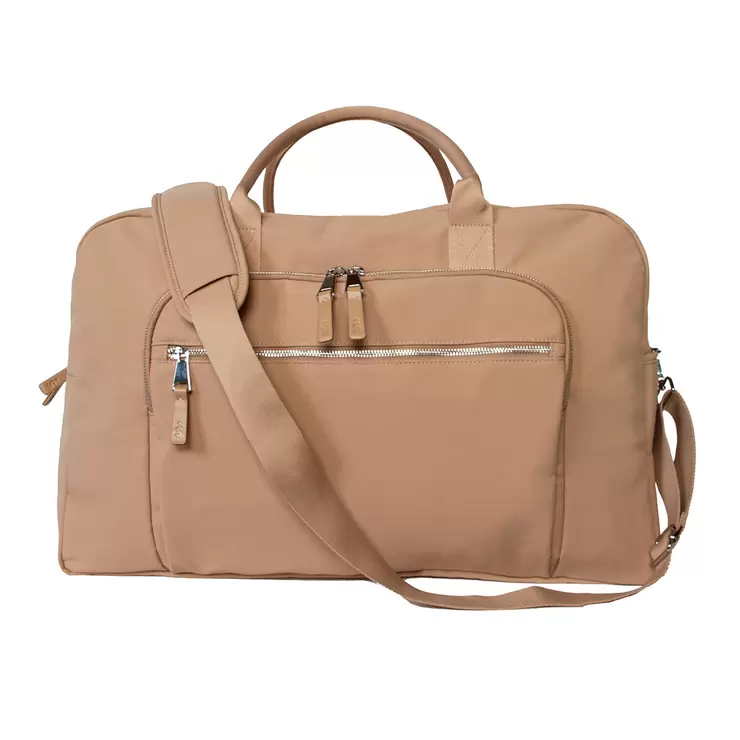 This water-repellent Weekender Bag is an essential piece for any travel lover. The large zippered main compartment offers plenty of space to pack for a multi-day getaway, with interior mesh pockets for organizing toiletries and other small items. The shoulder strap is fully adjustable and removable, when not in use. Meanwhile, the built-in rear travel trolley sleeve slips securely over the handle of a standard rolling bag, letting you breeze through the airport or hotel parking lot no matter how much luggage you have in tow. Open side pockets are perfect for a water bottle or compact umbrella!