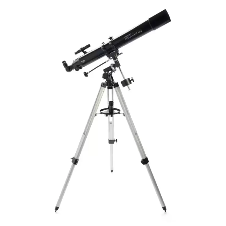 The Celestron PowerSeeker 80EQ is designed to give the perfect combination of quality, value, features and power. With its refractor design and large 80mm aperture, it's a great way to open up the wonders of the Universe to the aspiring astronomer. The German equatorial mount and tripod included with this telescope is best suited for astronomical use, however, can be used for terrestrial viewing. This mount contains setting circles and slow motion cables which make it easier to locate and track astronomical objects. The two included eyepieces allow for 45x and 225x magnification, which can be increased three fold with the 3x barlow lens, also included in the box.