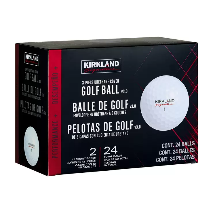 Introducing the upgraded Kirkland Signature Three-Piece Urethane Cover Golf Ball Performance Plus, a high-performance ball that gives you more distance and increased durability on the course. Each Kirkland Signature Performance Plus Golf Ball has a soft urethane cover that reduces spin rate for longer drives and improves durability for longer play. The thinner urethane cover also enhances energy transfer at impact, allowing the ball to travel even further. The low compression, highly elastic rubber core delivers a soft feel with high speed, while the 338-dimple pattern enhances aerodynamics for a penetrating ball flight. Additionally, the speed-boosting mantle is engineered with three-piece construction to fine-tune spin with every club in your bag; from low spin with long irons for more distance, to high spin with short irons for more accuracy. The Kirkland Signature Three-Piece Urethane Cover Golf Ball Performance Plus comes in two 12-count boxes; 24 balls in total.