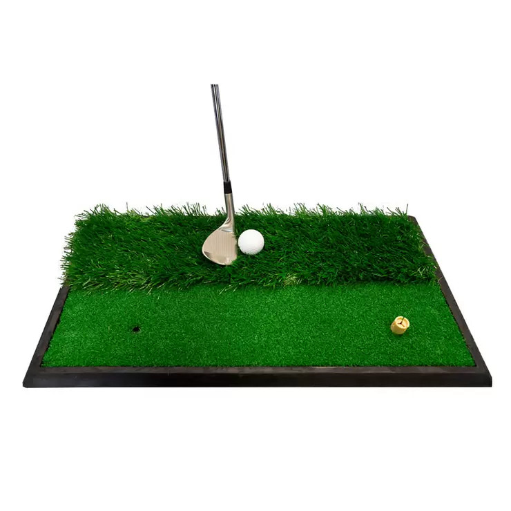 The Dual Practice Mat offers ultra realistic driving practice in your own garden. The dual mat features a fairway strip with a rubber tee and a rough strip featuring ultra-realistic synthetic grass. The mat is perfect for practicing with both woods and irons. The mat features a rubber base that weighs it down and grips it securely to the ground.